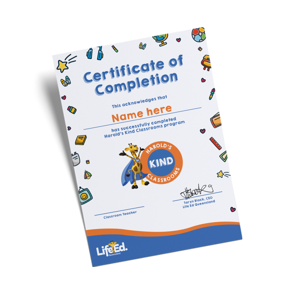 Celebrate completing Life Ed Qld’s Harold’s Kind Classrooms program with your students.